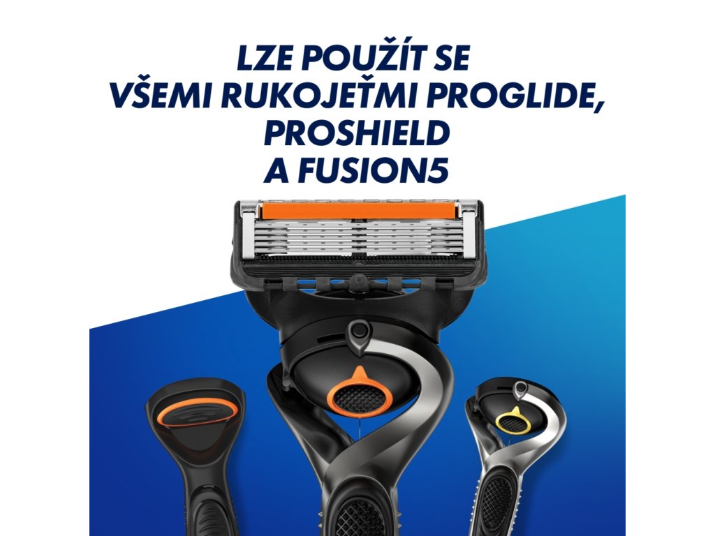 - Holicí hlavice k pánskému holicímu strojku Gillette Fusion5 ProGlide mají 5 břitů s povrchovou úpravou snižující tření, takže je při holení stěží ucítíte.