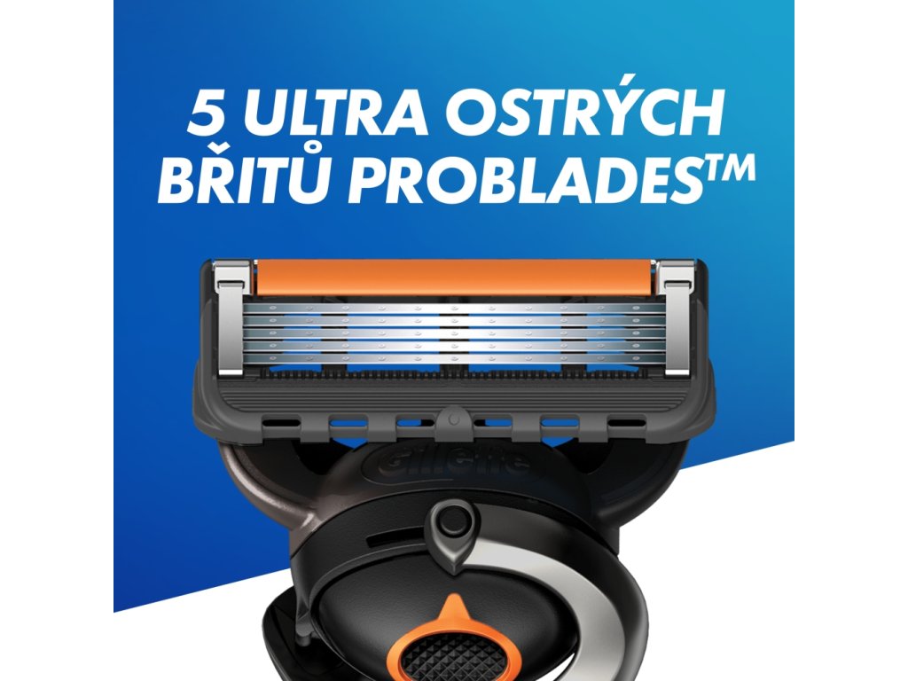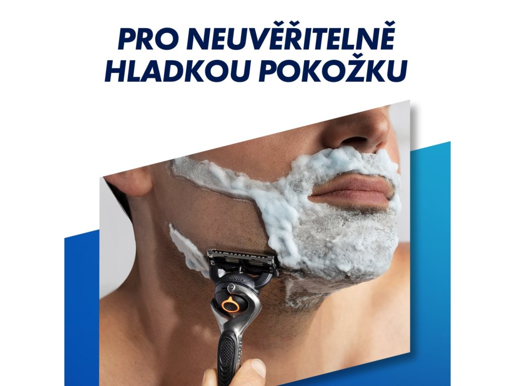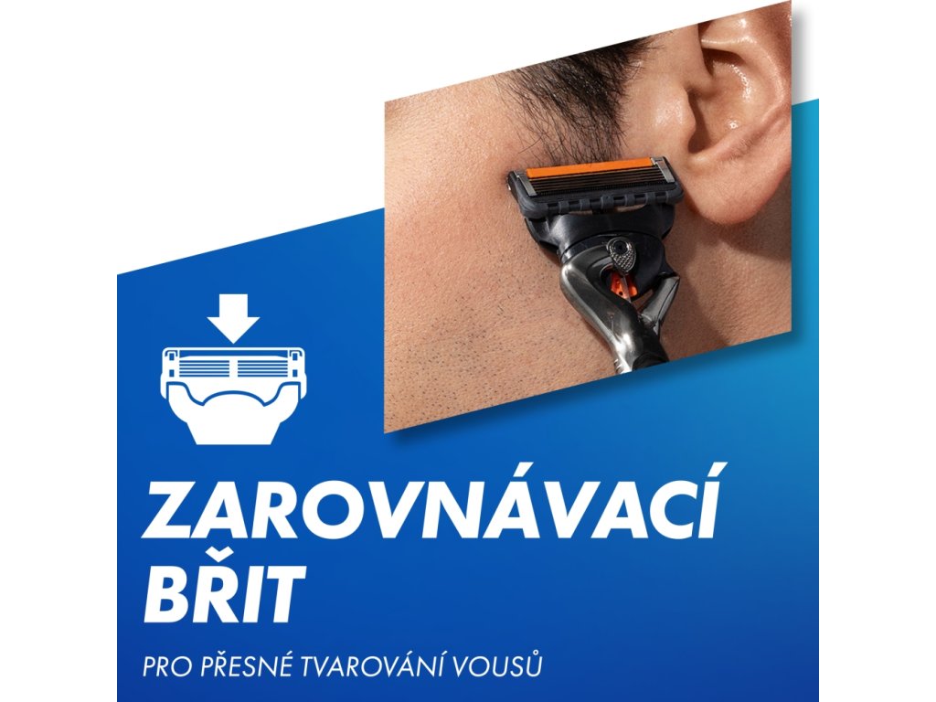 - Holicí hlavice Gillette s 5 břity s povrchovou úpravou snižující tření, které při holení stěží ucítíte.