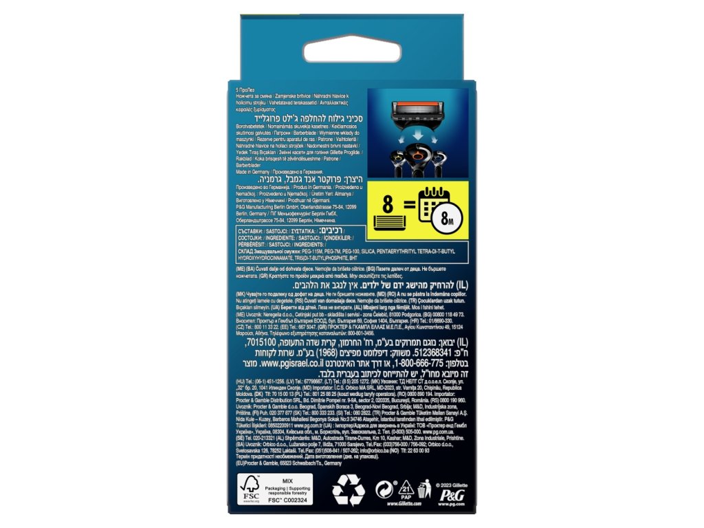 - Holicí hlavice k pánskému holicímu strojku Gillette Fusion5 ProGlide mají 5 břitů s povrchovou úpravou snižující tření, takže je při holení stěží ucítíte.