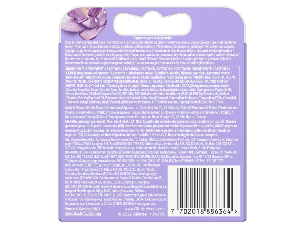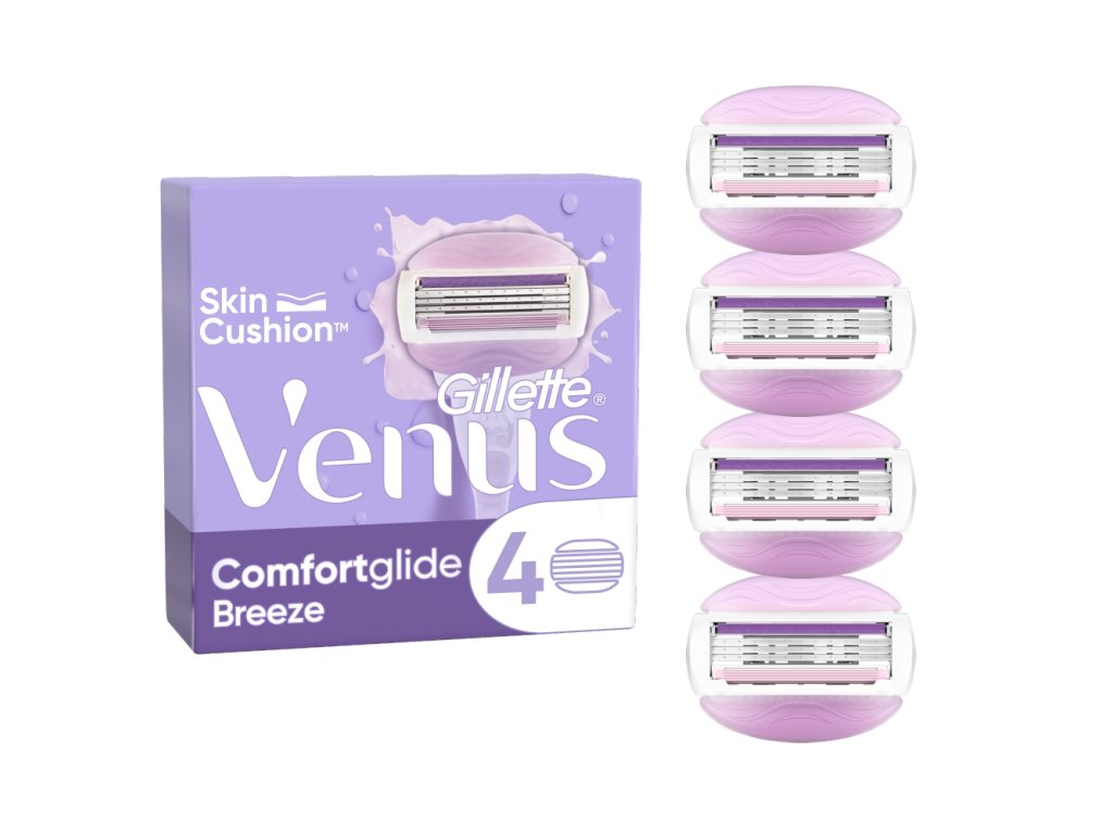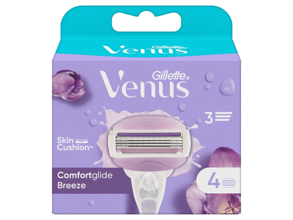Dopřejte své pokožce komfortní péči břitů dámského holicího strojku Gillette Venus ComfortGlide Breeze. Se 3 břity kopírujícími křivky těla a zabudovanými pásky s gelem na holení, které uvolňují svěží tělová másla s vůní frézie pro neuvěřitelný skluz, pohodlí a zážitek při holení.