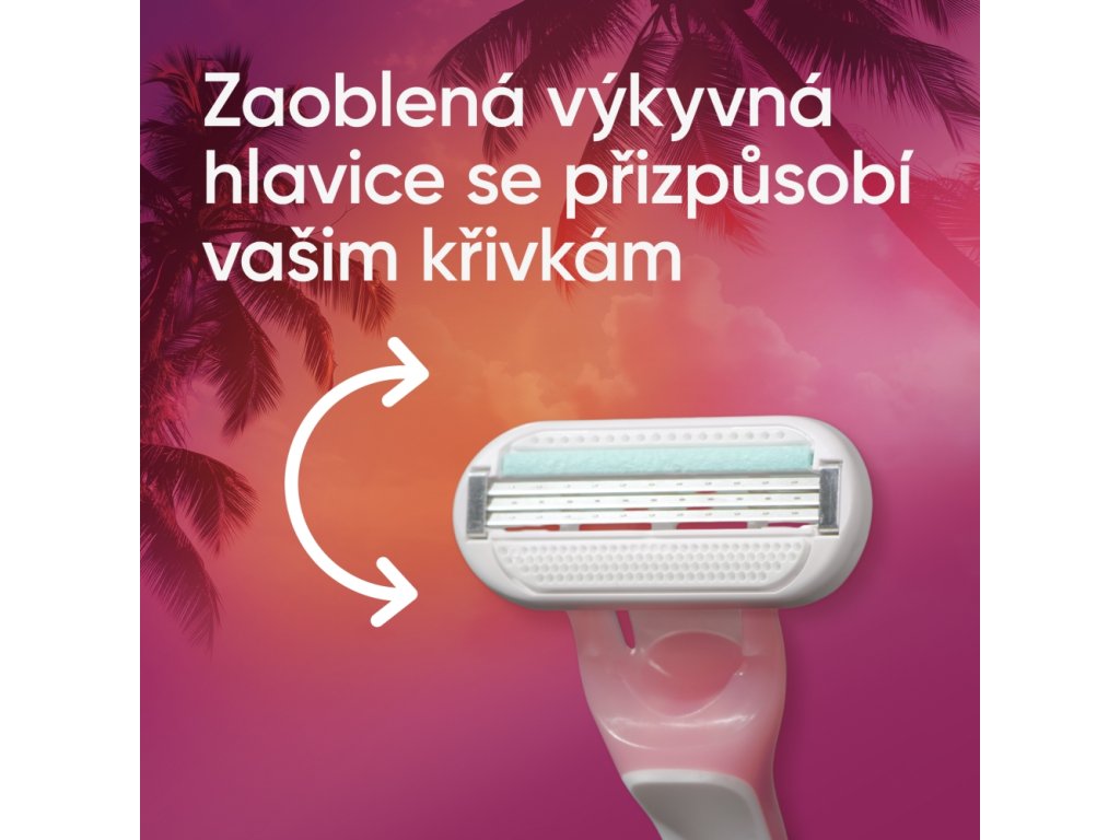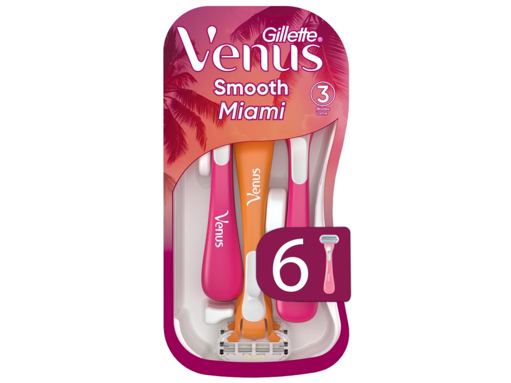 Dámská pohotová holítka Venus jsou navržena s ohledem na ženské tělo. Dámská holítka Venus Smooth Miami zajišťují hladké a dokonalé oholení bez námahy. Tato dámská pohotová holítka mají 3 břity kopírující křivky těla a výkyvnou hlavici, která reaguje i na nejjemnější změny kontur těla. S ergonomickou rukojetí s měkkým úchopem, která pohodlně sedí v ruce.