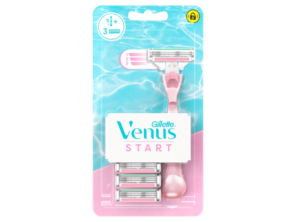Dámský holicí strojek Gillette Venus Start má 3 břity pro hladké oholení Zvlhčující pásek uvolňuje zvlhčující látky Pomáhá tak usnadňovat skluz holicího strojku a chránit před podrážděním Všechny náhradní holicí hlavice Venus lze používat se všemi rukojeťmi holicího strojku Gillette Venus s výjimkou Gillette Simply Venus