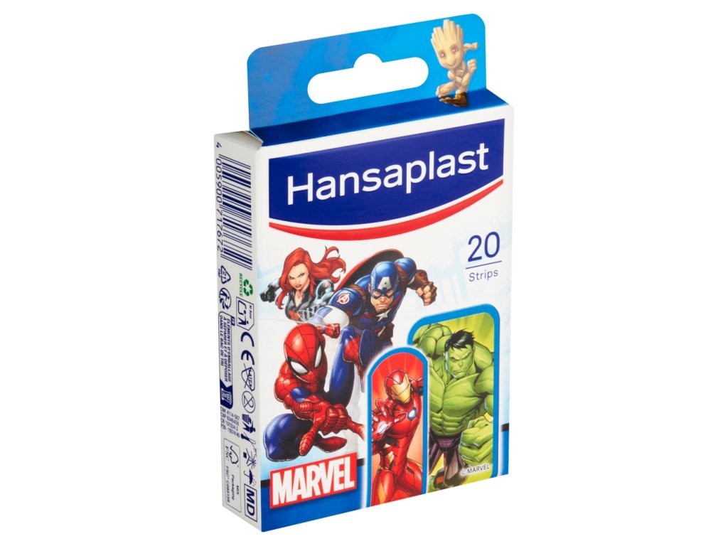 Hansaplast Marvel jsou dětské náplasti s motivy oblíbených hrdinů od Marvelu, jako jsou Spider-Man, Captain America a Hulk. Tyto náplasti jsou navrženy tak, aby chránily drobné rány před nečistotami a bakteriemi, přičemž jsou šetrné k dětské pokožce a snadno se odstraňují. Použité barvy jsou pro děti bezpečné.