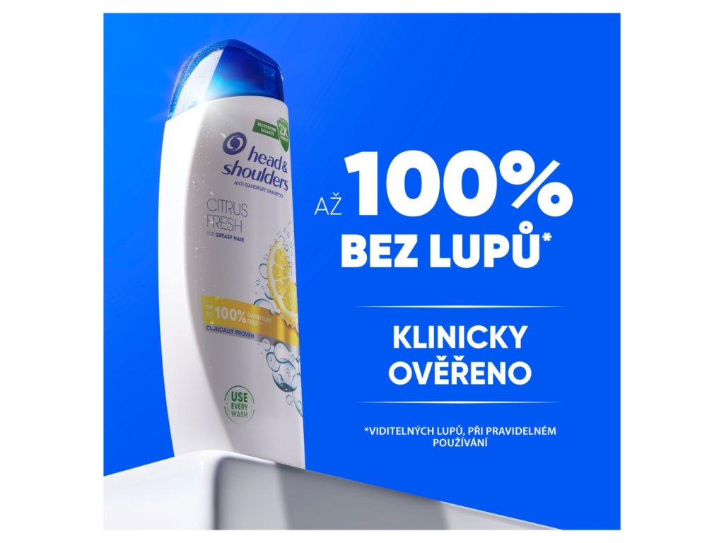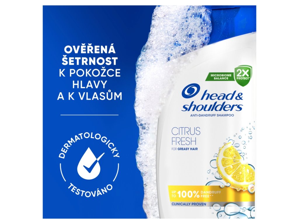 Head & Shoulders Citrus Fresh, Šampon proti lupům 800 ml Head & Shoulders šampon na vlasy Citrus Fresh šampon směsí výtažků z citrusových plodů optimálně čistí rychle se mastící vlasy a propůjčuje jim přirozený lehký vzhled. Pomáhá působit i proti odolným lupům. Šampon pro každodenní použití pro muže i ženy.