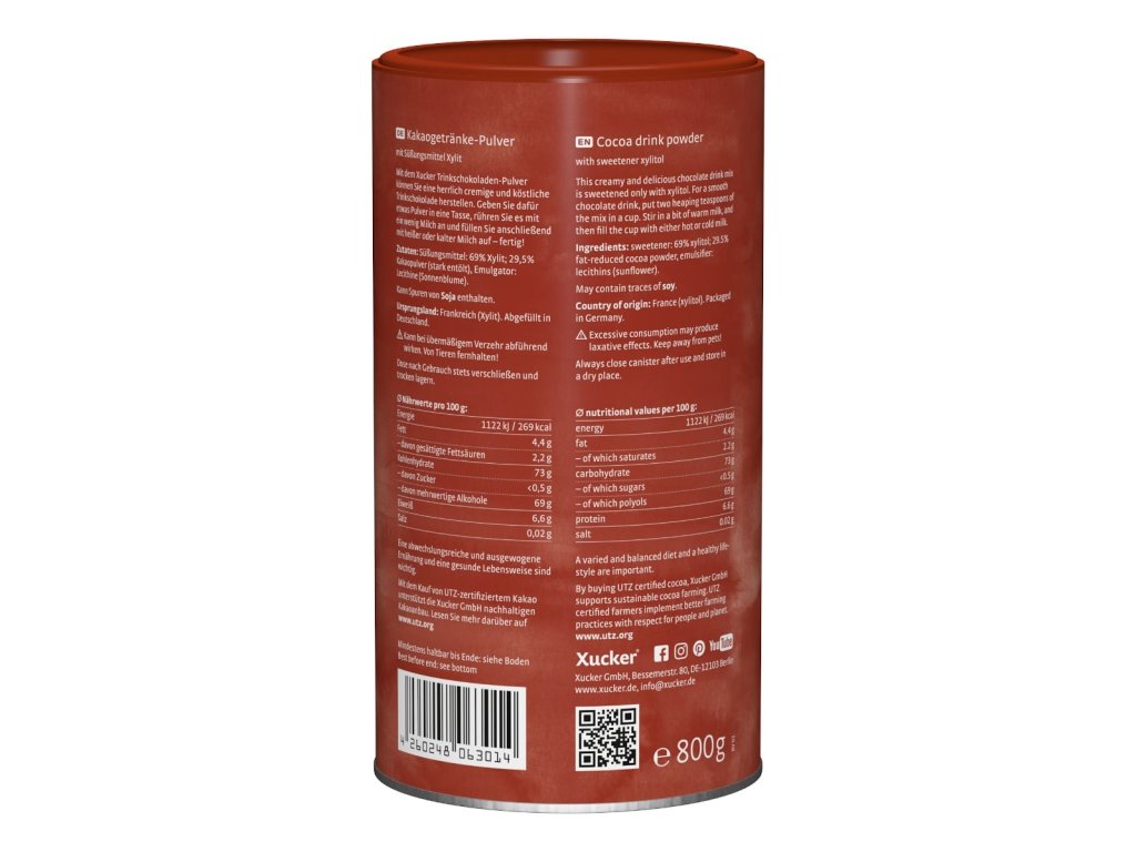 Informace o alergenech - může obsahovat stopy sóji. Po použití nádobu dobře uzavřete a skladujte na chladném a suchém místě, chraňte před teplem. Produkt může mít v případě nadměrné konzumace projímavý účinek. Uchovávejte mimo dosah zvířat, protože i malá množství xylitolu mohou být pro psy nebezpečná. Naopak kočky tolerují Xucker xylitol bez problémů.