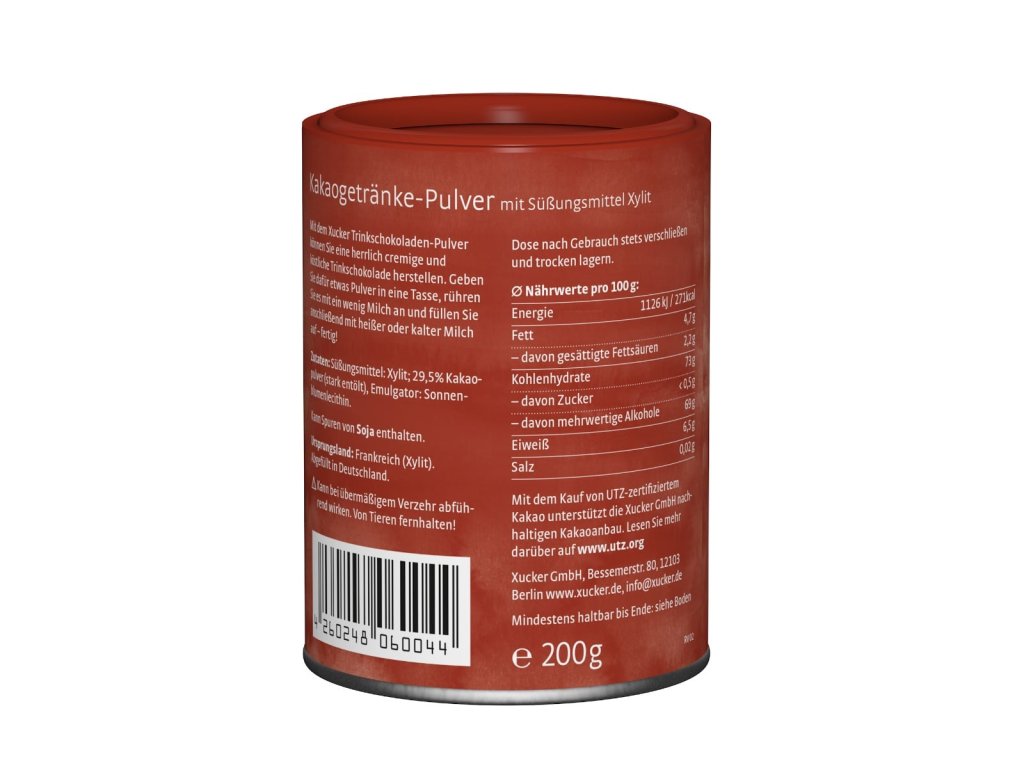 Informace o alergenech - může obsahovat stopy sóji. Po použití nádobu dobře uzavřete a skladujte na chladném a suchém místě, chraňte před teplem. Produkt může mít v případě nadměrné konzumace projímavý účinek. Uchovávejte mimo dosah zvířat, protože i malá množství xylitolu mohou být pro psy nebezpečná. Naopak kočky tolerují Xucker xylitol bez problémů.