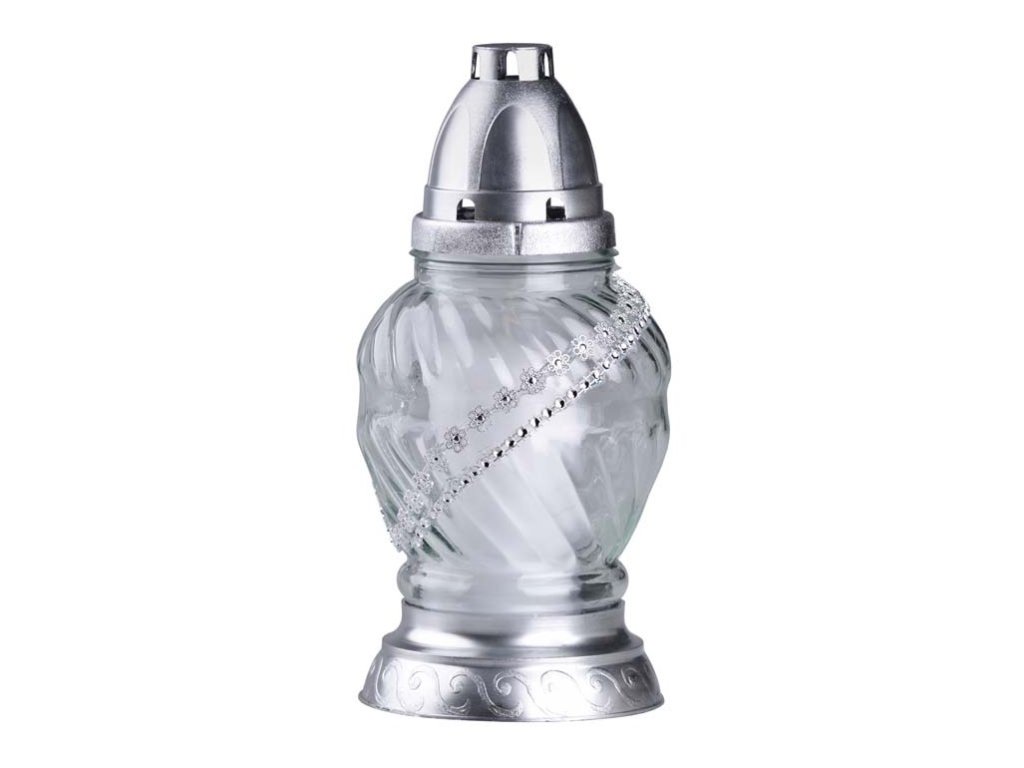 Hřbitovní sklo 24 cm vklad 180g 58h. zdobené stříbrnými kamínky