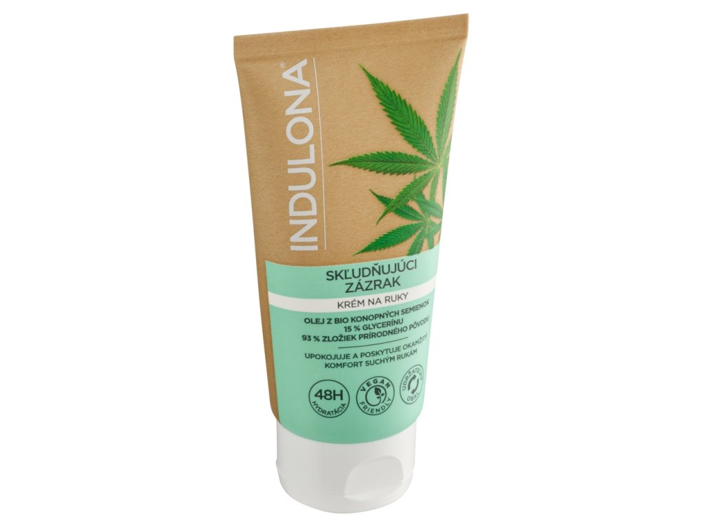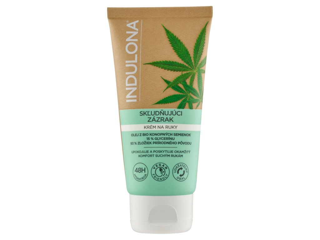 Krém na ruce Indulona Zklidňující zázrak byl speciálně vyvinutý tak, aby poskytl okamžitý komfort suchým rukám. Efektivně hydratuje a zklidňuje pokožku a poskytuje jí dlouhotrvající ochranu. Obsahuje olej z bio konopných semínek, bohatý na vitamin E a omega mastné kyseliny, 15 % glycerinu a 93 % složek přírodního původu. Vhodný pro každodenní použití. Ruce jsou viditelně zklidněné za 15 minut**. Okamžitá hydratace pokožky je zvýšená o 43 %**. Poskytuje okamžitý komfort suchým rukám; 92%*.