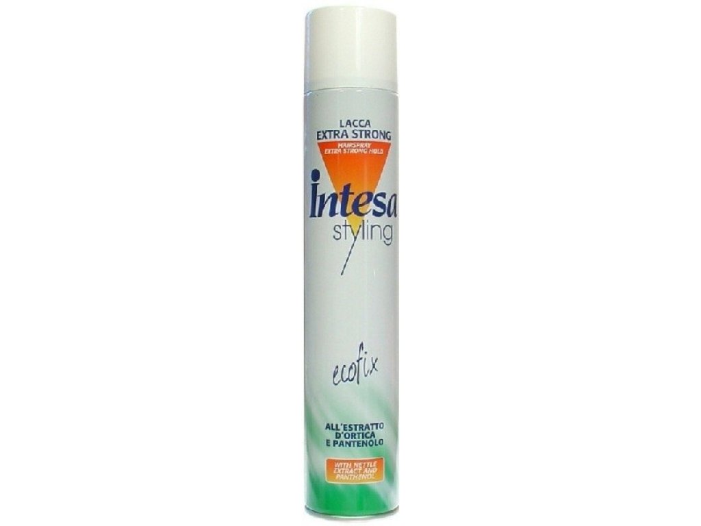 Intesa Styling Hair Spray Forte silně tužící lak na vlasy s výtažkem z kopřivy a s panthenolem. Tento kadeřnický lak na vlasy má speciální složení vynalezené k přirozené fixaci jakéhokoli typu účesu, kterému zaručí přirozený tvar a trvanlivost, díky výtažku z kopřivy a panthenolu, které jsou základními produkty v péči o vlasové vlákno. Respektuje přirozenost vlasů, aniž by je vysušil zanechává vlasy hedvábné a lesklé. Snižuje maštění vlasů. Lehce vyčesatelný hřebenem.