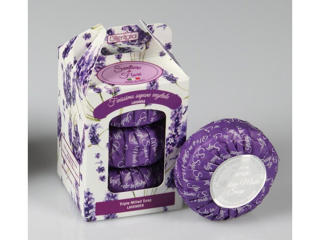 S levandulovou vůní Tři extra jemná, třikrát mletá přírodní mýdla z dílny italské rodinné firmy. S obsahem olivového a mandlového oleje, které vyživují a zvláčňují pokožku. Vůně vám bude připomínat levandulového pole. Vhodné i pro suchou a zralou pokožku. Bez SLS/SLES, parabenů a barviv.Doplňkové parametry