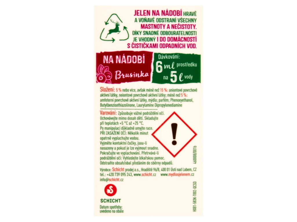 Jelen na nádobí s mýdlem a výtažkem z kapradí pro účinnější a voňavější odstranění mastnoty a nečistoty, navíc jemný k pokožce.