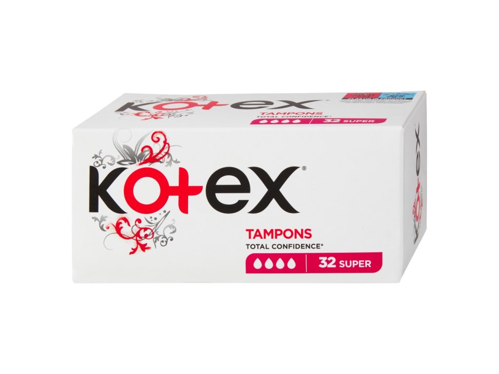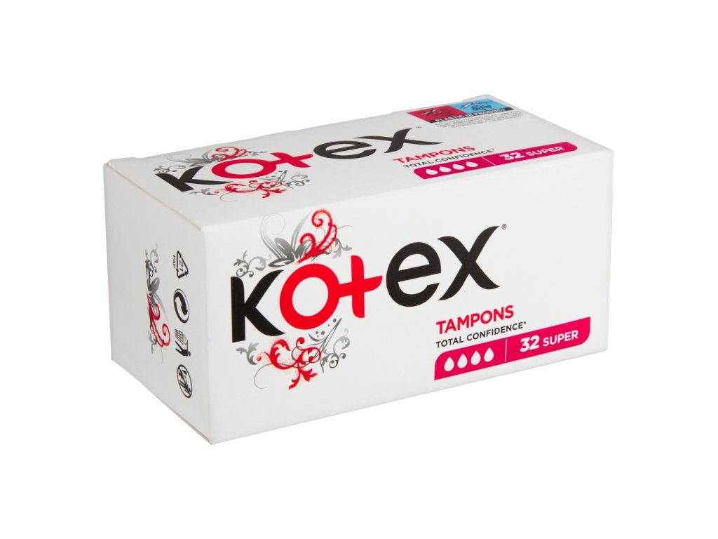KOTEX Tampony Super zajišťují jedinečnou ochranu díky speciálně tvarovaným vláknům z viskózy, dále poskytují maximální svobodu pohybu, pohodlí a spolehlivost při použití. Balení jednotlivých tamponů obsahuje unikátní Twist and Open systém, který je určený pro snadné použití.