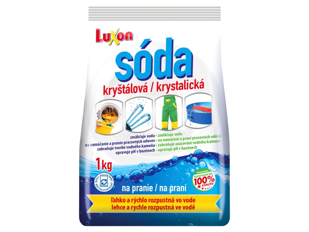 | Příprava a použití: | Návod na použití: Namáčeni: 60 - 80 gramů na 10 litrů vody. Praní ve středně tvrdé vodě: 7,5 g na 10 l vody. Praní ve velmi tvrdé vodě: 25 g na 10 l vody. Rovná polévková lžíce obsahuje cca 7,5 g sody. |