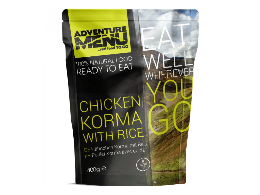 Především vám však energii, která vás nakopne během cesty za vaším dobrodružstvím. Díky tomuto jídlu povýšíte na úplně novou úroveň i stravování během kempování, kdy nemusíte jíst pouze rychlé občerstvení. Kuře Korma s rýží si připravíte velmi jednoduše a rychle podle návodu. I proto se nejlépe vychutnává na turistických vrcholech s výhledem na svět pod vámi. Oceníte ho ale i v případě náročných dní doma, kdy vám nezbývá čas na vaření. Stačí totiž jen chvilka a skvělé jídlo plné živin je na stole.