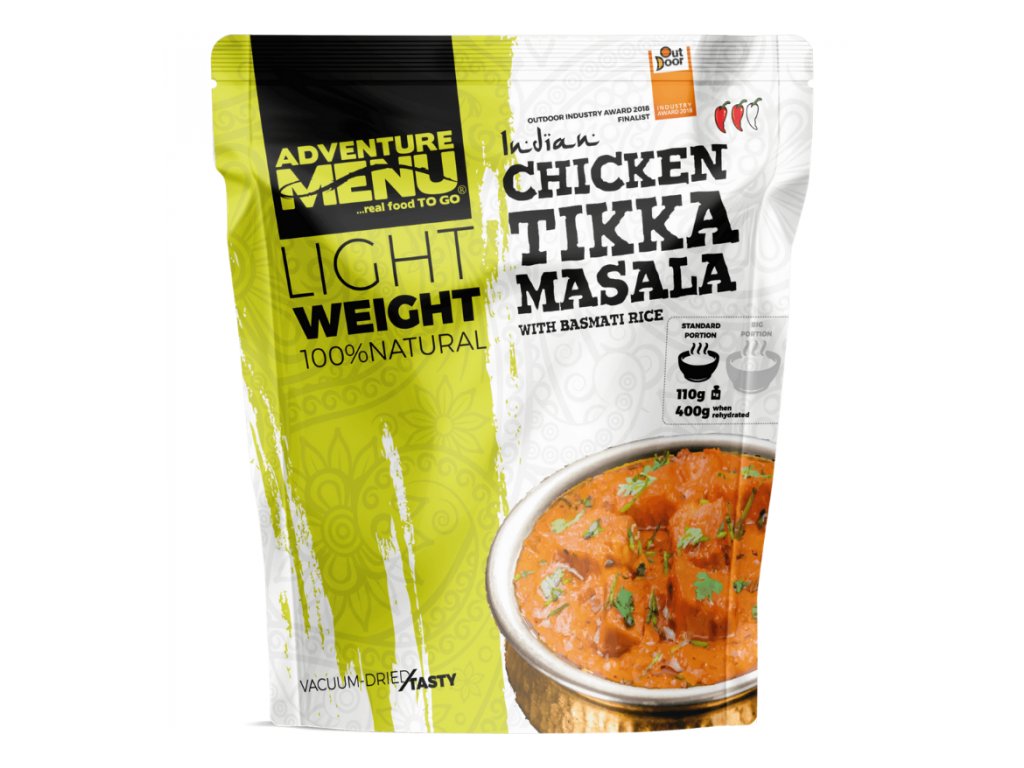 Kuře Tikka Masala s rýží basmati je oblíbená indická pochoutka vhodná na cesty. Celý pokrm se nejprve připravuje tradičním způsobem s využitím kvalitních ingrediencí. Poté přichází na řadu unikátní technologie sušení Vaccum-Dried Tasty®. Díky té si pokrm zachovává skvělou chuť a nutriční hodnoty. Zároveň při ní dochází k úspoře hmotnosti až o 80 %. Výsledný produkt se balí do praktických vakuových sáčků, díky kterým s sebou nenesete žádný vzduch navíc. Výsledkem je ultralehký pokrm, který využijete hlavně na cestách. Oceníte ho zejména v případech, kdy si s sebou chcete vzít výživné jídlo, ale zároveň šetříte prostor a každý gram, který ponesete na zádech. Skvěle se hodí na horskou turistiku, kempování nebo cyklistické výlety. Můžete si jej ovšem vychutnat i doma, když nemáte čas na vaření.