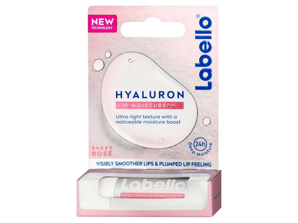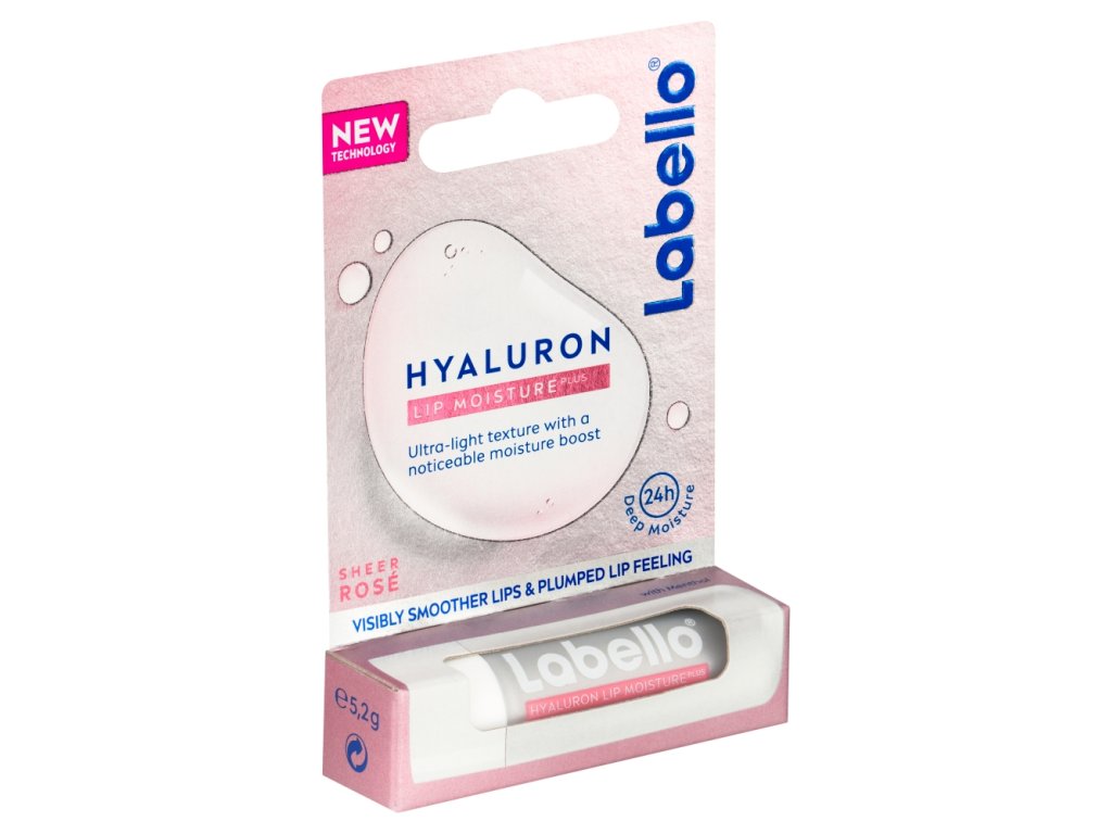 Labello Hyaluron Rosé intenzivně pečuje a hydratuje, ale zároveň nevytváří pocit nepříjemně lepkavých úst. Místo lepkavého pocitu příjemná a ultralehká textura, k tomu jemný růžový nádech a vůně ovoce. Obsahuje 99 % ingrediencí přírodního původu a navíc v tyčince, která je snadno recyklovatelná.