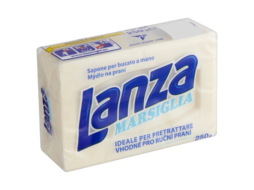 Jádrové mýdlo Lanza na ruční praní a na praní v klasických pračkách, chrání vlákna a barvy, nedráždí pokožku, účinně odstraní skvrny a špínu, nezatěžuje odpadní vody.