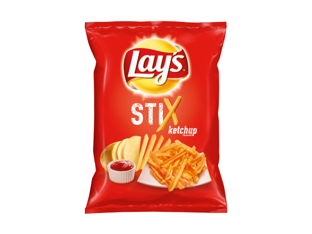 Lay’s Stix Ketchup jsou křupavé bramborové tyčinky s výraznou chutí kečupu, která kombinuje sladké, kyselé i lehce pikantní tóny. Díky svému tenkému tvaru jsou extra křupavé a představují ideální alternativu ke klasickým chipsům.