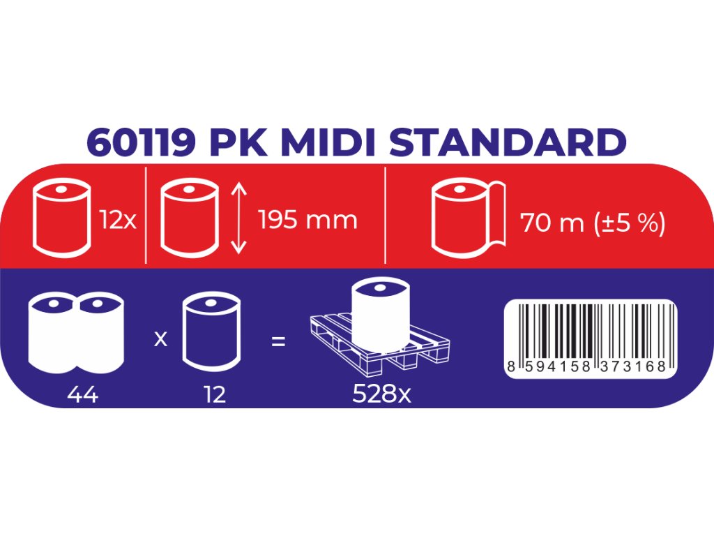Výška role: 195 mm (± 5 %) – kompatibilní s většinou zásobníků typu MIDI.