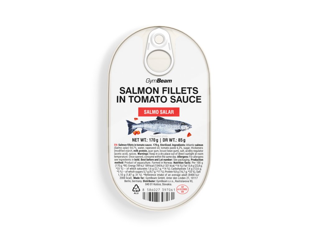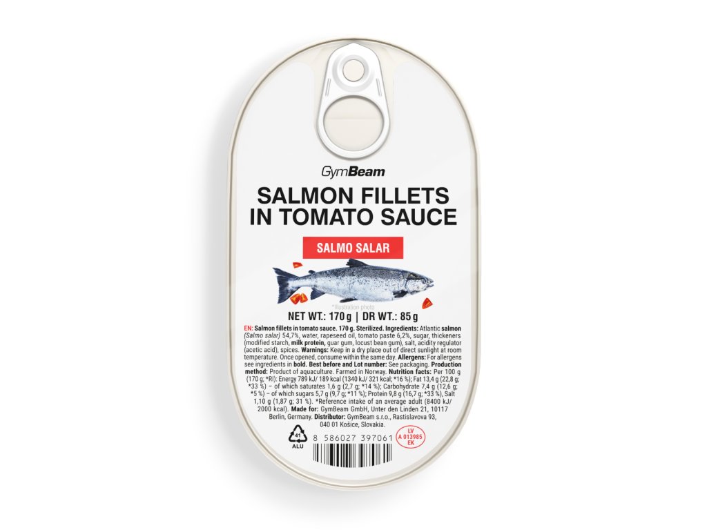 Lososové filety v rajčatové omáčce jsou šťavnaté filety z atlantického lososa (Salmo salar), které se dokonale hodí k lahodné rajčatové omáčce. Pocházejí z Norska a pyšní se vysokým obsahem proteinů, které podporují růst a udržení svalů, jakož i udržení zdravých kostí. To ocení zejména siloví sportovci, kulturisté a všichni aktivní lidé. Příznivce zdravého životního stylu zase potěší vysoký obsah nenasycených mastných kyselin (zdravých tuků). Když ve stravě nahradí nasycené tuky, přispívají tyto tuky k udržení zdravé hladiny cholesterolu.