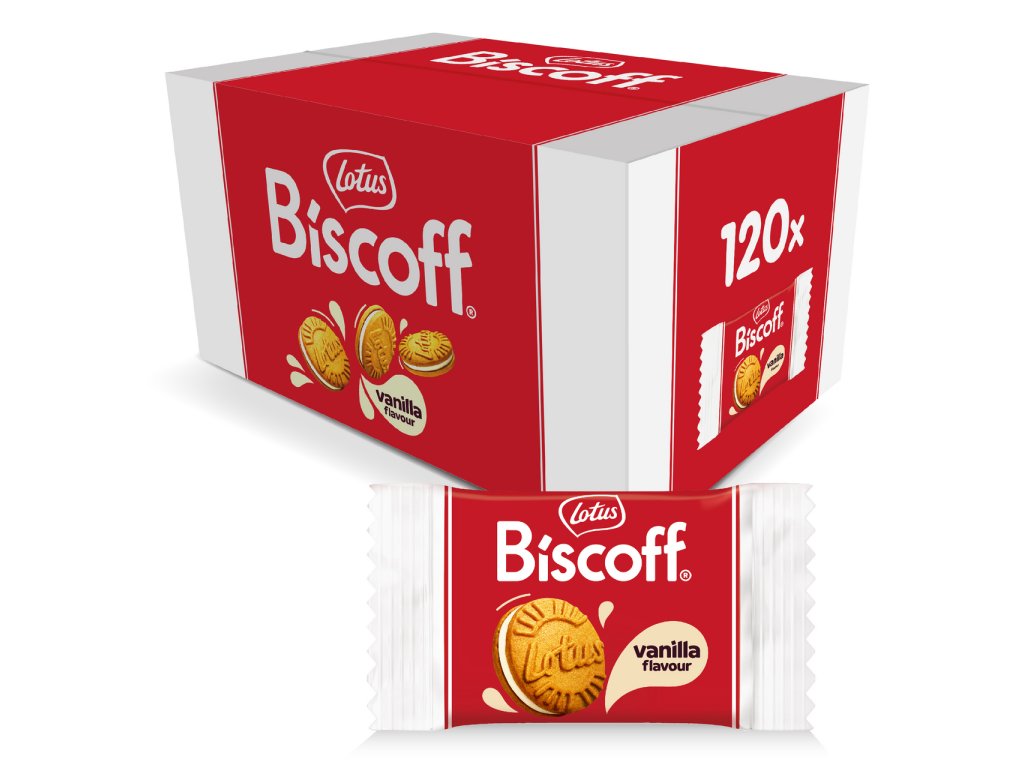 Lotus Biscoff sušenky plněné krémem s vanilkovou příchutí jednotlivě balené 120x 10g