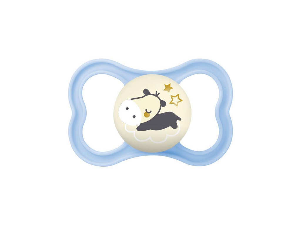 Svítící dudlík s extra velkými větracími otvory pro lepší proudění vzduchu kolem úst MAM Air Night 6+ je velmi šetrný k dětské pokožce díky extra velkým větracím otvorům v límci dudlíku, které umožňují lepší proudění vzduchu kolem úst a tím pomáhají zmenšit podráždění pokožky. Dudlíky MAM Air Night jsou speciálně vyvinuty pro noční použití – knoflík dudlíku ve tmě svítí, takže ho rodiče i děti mohou snadno nalézt i v noci. Ortodontické dudlíky MAM jsou vyvíjeny v úzké spolupráci s předními lékařskými odborníky pro zdravý vývoj zubů a dásní. Plochá symetrická savička z vysoce kvalitního silikonu napodobuje maminčin prs při kojení a podporuje tak přirozený sací reflex. Navíc vždy správně padne do dětských úst. 94 % miminek přijímá silikonovou savičku MAM SkinSoft™, která je jemná jako dětská pokožka (průzkum trhu 2010–2019, testováno 1 463 dětmi v 6 zemích). Díky knoflíku lze dudlík snadno a rychle uchopit a rovněž jednoduše připevnit k pásku. Všechny produkty MAM jsou vyrobeny z materiálů neobsahujících BPA a BPS.Doplňkové parametry