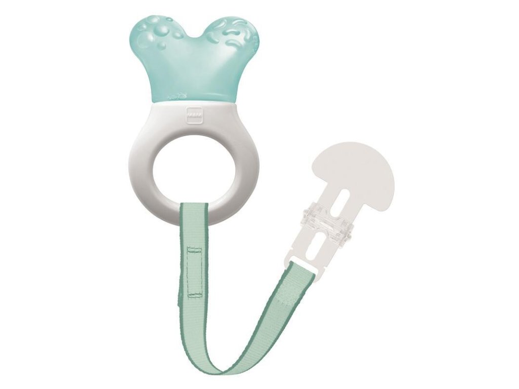 Podporuje vývoj vašeho miminka Kousátko Mini Cooler masíruje, uvolňuje a uklidňuje – děti tak mohou pokračovat v objevování. Strukturovaný povrch jemně masíruje citlivé dásně. Díky inovativnímu tvaru kousátko snadno dosáhne i na zadní zoubky. Vodou naplněná chladicí část uvolňuje a uklidňuje. Pro zvýšení efektu dejte kousátko vychladit do lednice. Díky chladicí části děti začínají rozpoznávat rozdíl mezi teplem a chladem, a tak dochází k vývoji jejich hmatu. Kousátko má kruhový tvar a je velmi lehké, díky tomu ho děti snadno uchopí a lehce drží. Ideální pro malé děti. Díky široká sponě, která se snadno zapíná, lze kousátko jednodušše připevnit na oblečení.Doplňkové parametry