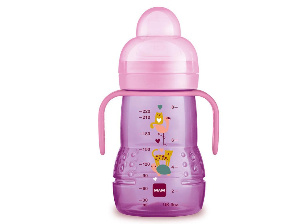 Lahev pro děti od 4 měsíců pro snadný přechod od kojení nebo lahve k hrnku Design nebo funkčnost? Lahev Trainer+ je obojím. Děti milují jeho veselé obrázky, rodiče ho milují, protože se na něj mohou spolehnout. To z něj činí ideálního průvodce pro aktivní a zvídavé děti. S lahví MAM Trainer+ je přechod od kojení nebo lahve k hrnku tak snadný – díky kombinaci inovativní nevylévací savičky a nevylévacího extra měkkého pítka. Protiskluzová ouška jsou navržená speciálně pro malé dětské ruce a umožňují snadné držení. Lahev má široké hrdlo pro jednoduché plnění a snadné čištění. Lahev lze mýt v myčce na nádobí. Savička, pítko i ouška jsou vhodné pro všechny lahve MAM a Trainer. Všechny produkty MAM jsou vyrobeny z materiálů neobsahujících BPA a BPS.Doplňkové parametry
