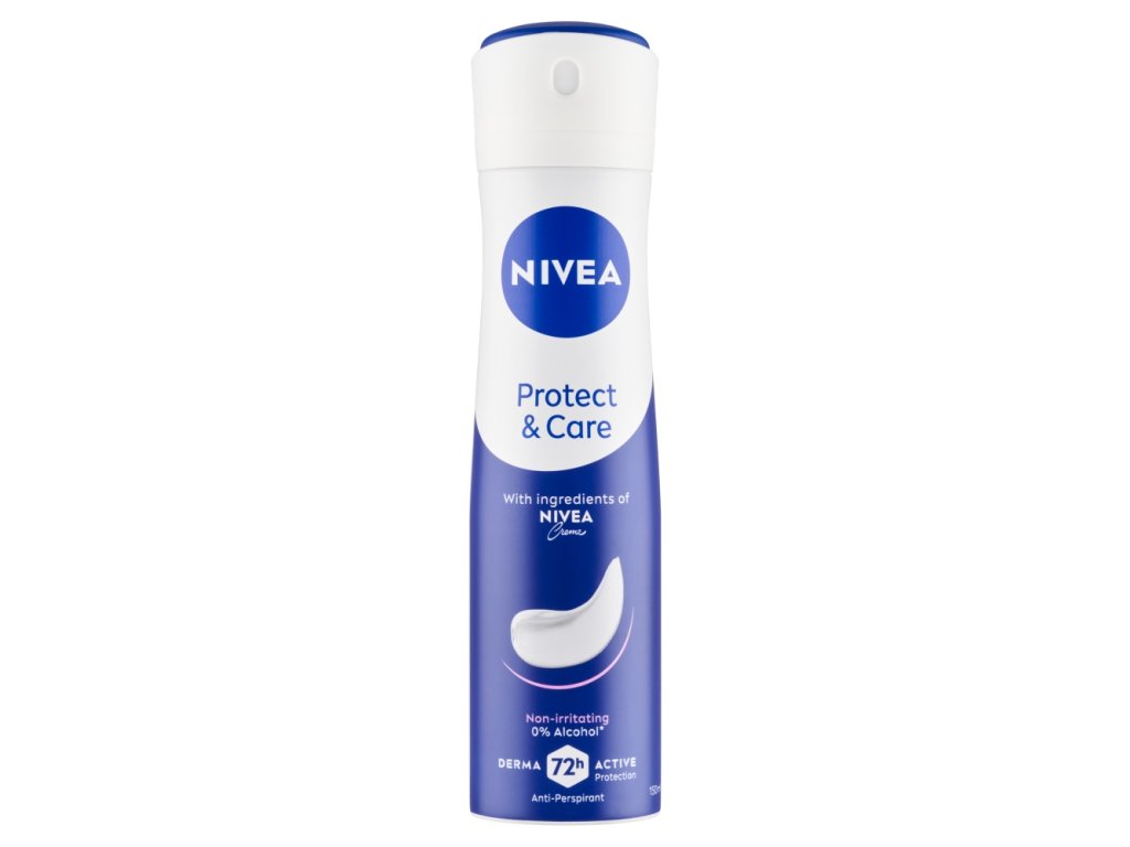 Šetrné složení s pečujícími ingrediencemi originálního krému NIVEA poskytuje spolehlivou ochranu proti pocení až po 48 hodin a zároveň mimořádně pečuje o jemnou pokožku podpaží. Po aplikaci se rychle vstřebává a zanechává podpaží na dotek hebké a příjemně suché. Obklopte se originální vůní krému NIVEA - NIVEA Sprej antiperspirant Protect & Care.