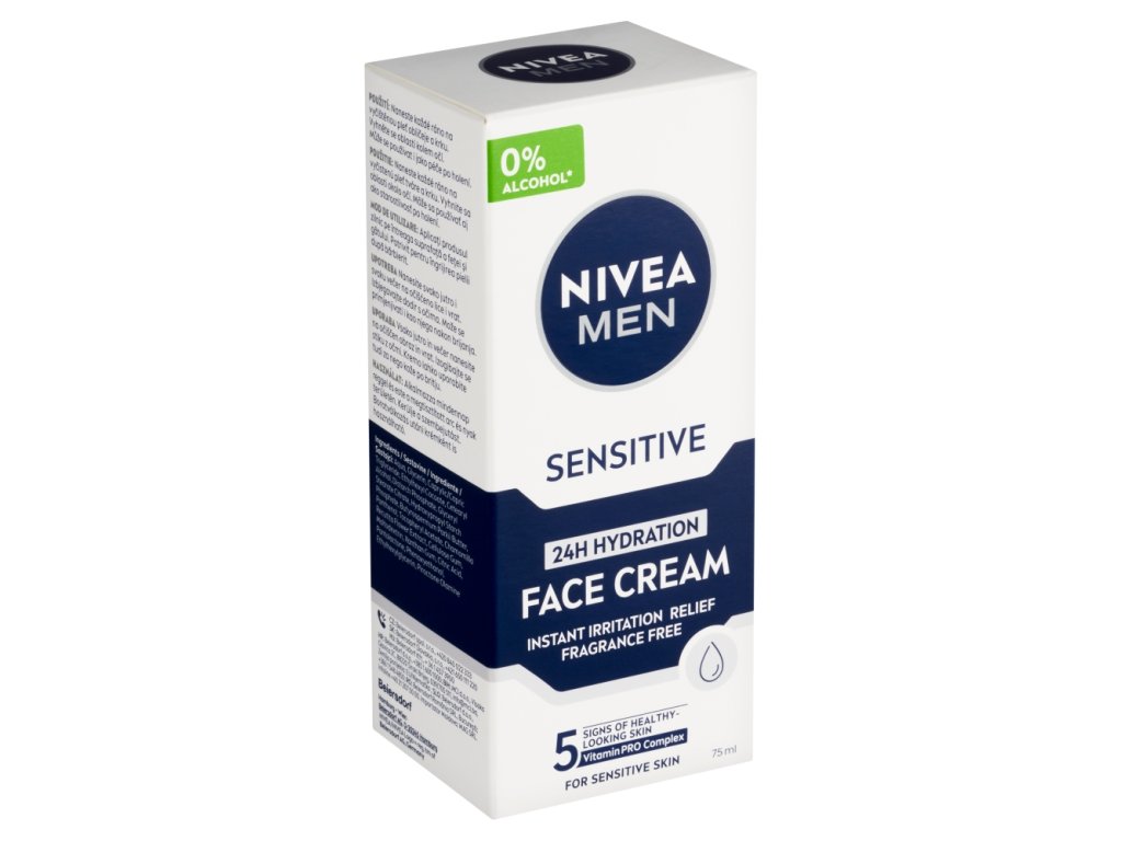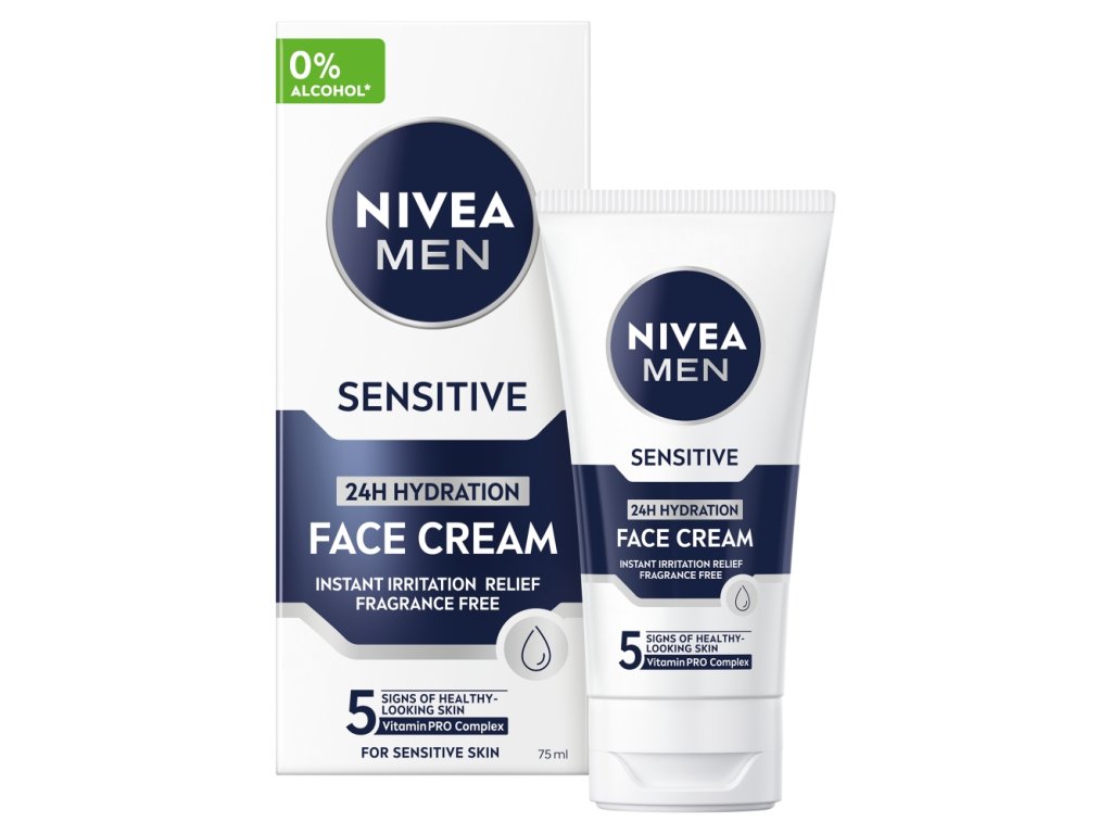 Nivea Men Sensitive krém na citlivou pleť a strniště poskytuje okamžitou úlevu od podráždění, 24-hodinovou hydrataci složení s Vitamin PRO Complexem poskytuje pleti každodenní pohodlí, pleť je méně citlivá při pravidelném používání zanechává hladké strniště bez zbytků krému Nivea Men krémový gel na citlivou pleť a strniště Sensitive je to pravé, pokud vás trápí problémy s podrážděnou pokožkou. Jemný gel nabízí každodenní péči pro 5 příznaků zdravě vypadající pleti a strniště. Poskytuje okamžitou úlevu od podráždění, hydratuje pokožku na 24 hodin. Strniště zanechává hladké bez zbytků krému. Pokožka je při pravidelném používání méně citlivá. Nivea Men krémový gel pro citlivou pleť a strniště Sensitive – pro každodenní pohodlí mužské pleti.