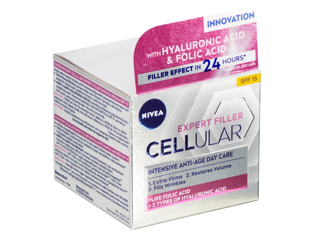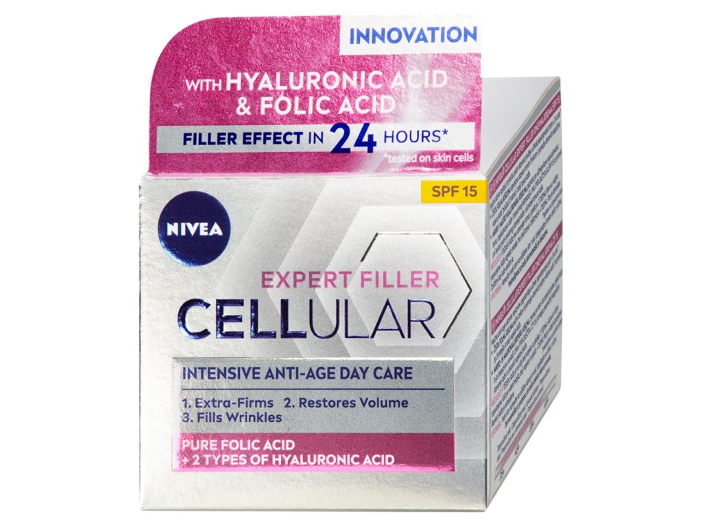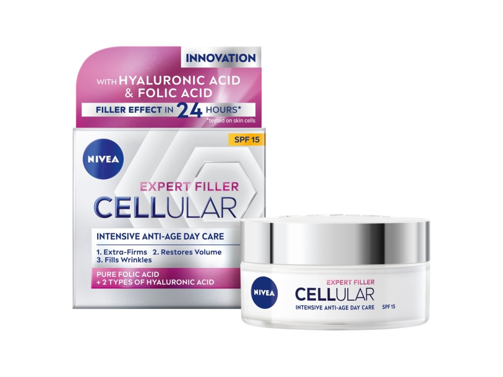 Dopřejte své pleti účinnou péči, díky níž se budou buňky chovat, jako by byly mladší. Vyplní a zredukuje vrásky a díky inovativnímu složení s kyselinou hyaluronovou, kolagenovým boosterem a dalšími látkami aktivujícími pleťové buňky vám pomůže okouzlit perfektním vzhledem. Zvolte jemnou péči se skvělými výsledky: NIVEA Zpevňující denní krém Hyaluron Cellular Filler.