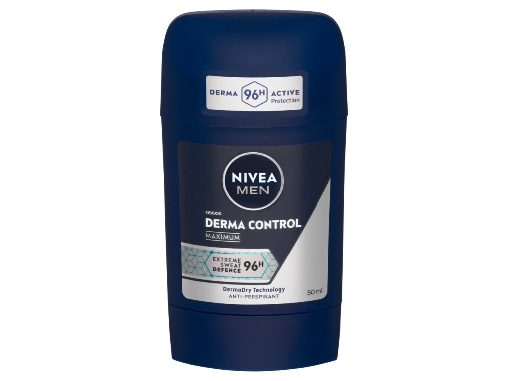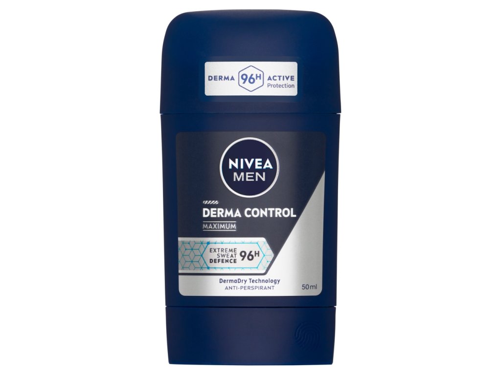 Objevte antiperspirant NIVEA MEN Derma Dry Control, který poskytuje 96hodinovou ochranu před pocením a zároveň o pokožku pečuje. Jedná se o nejsilnější antiperspirant v tyčince Nivea. Klinicky ověřená ochrana před potem a zápachem. Složení s technologií DermaDry chrání pokožku a zajišťuje pocit měkké a hladké pokožky bez podráždění.