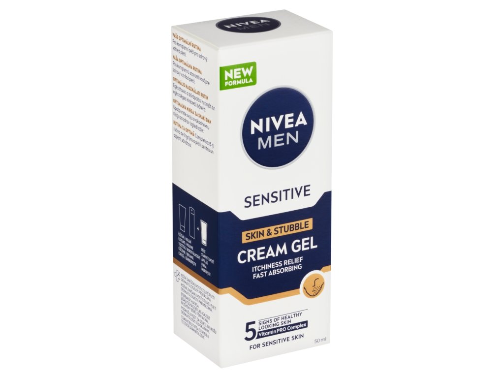 Nivea Men Sensitive krémový gel na citlivou pleť a strniště poskytuje okamžitou úlevu od podráždění, 24-hodinovou hydrataci složení s Vitamin PRO Complexem poskytuje pleti každodenní pohodlí, pleť je méně citlivá při pravidelném používání zanechává hladké strniště bez zbytků krému Nivea Men krémový gel na citlivou pleť a strniště Sensitive je to pravé, pokud vás trápí problémy s podrážděnou pokožkou. Jemný gel nabízí každodenní péči pro 5 příznaků zdravě vypadající pleti a strniště. Poskytuje okamžitou úlevu od podráždění, hydratuje pokožku na 24 hodin. Strniště zanechává hladké bez zbytků krému. Pokožka je při pravidelném používání méně citlivá. Nivea Men krémový gel pro citlivou pleť a strniště Sensitive – pro každodenní pohodlí mužské pleti.