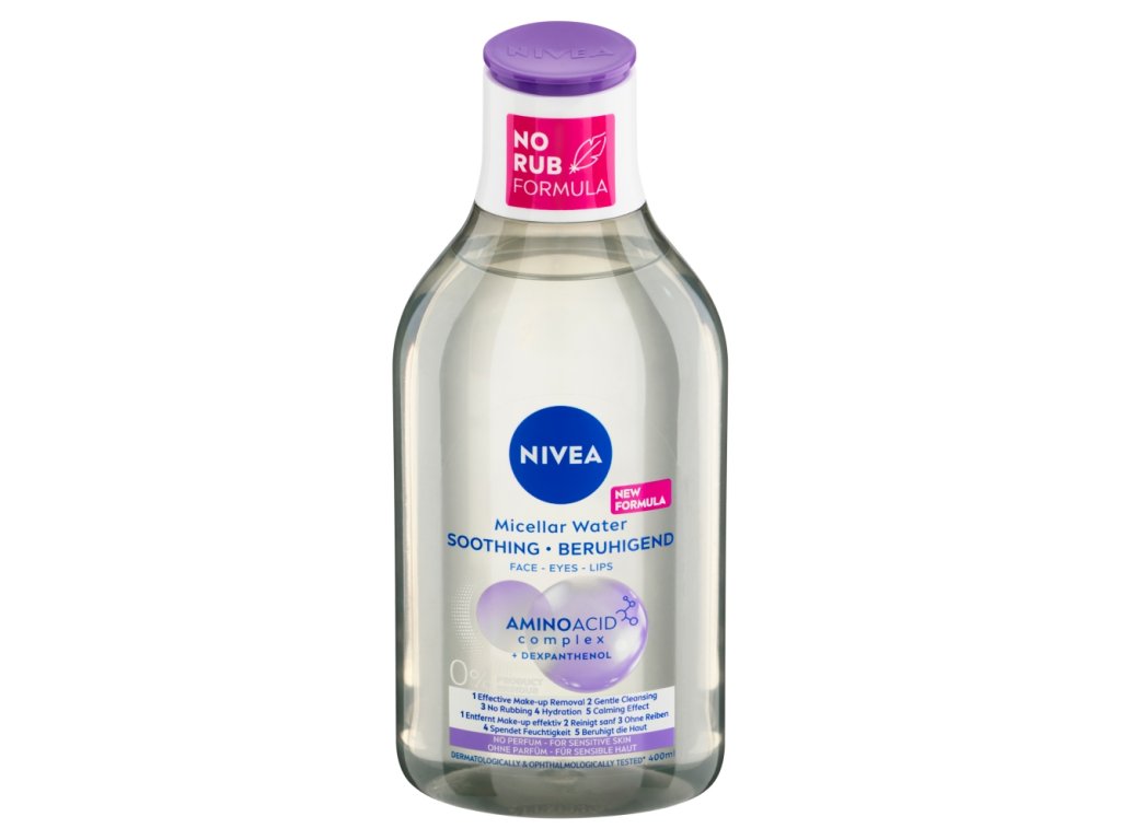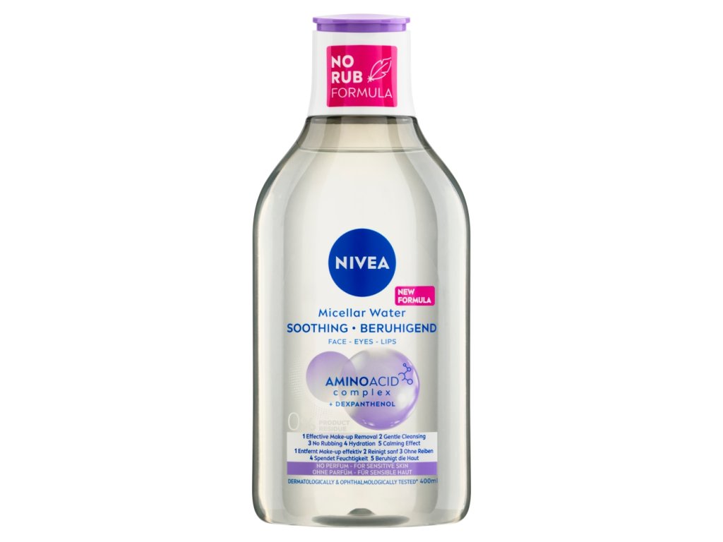 Objevte dokonalý odličovací a čisticí přípravek, který účinně odstraňuje nečistoty a zároveň je šetrný k pleti! Díky technologii micel přitáhnete jako magnet každodenní nečistoty, mastné částečky i stopy make-upu. Dexpanthenol a olej z jadérek hroznového vína navíc hydratují pleť a chrání ji před podrážděním. Pro perfektní čistotu bez nutnosti drhnutí: NIVEA Zklidňující pečující micelární voda 3 v 1.