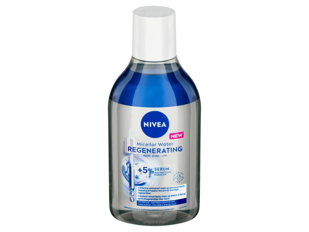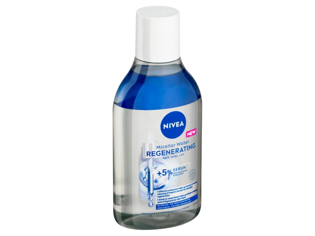 Dvoufázová regenerační micelární voda účinné čiští a snadno odstraňuje i voděodolný make-up. Voda obsahuje 5 % séra s panthenolem a skvalanem, zklidňuje a vyživuje suchou a podrážděnou pokožku a pomáhá s obnovou přirozené kožní bariéry. Panthenol efektivně hydratuje a regeneruje. Spolu se skvalanem tvoří skvělou kombinaci pro odpočatou a regenerovanou pleť. Dvoufázová Regenerační micelární voda dokonale odličuje a čistí pleť.