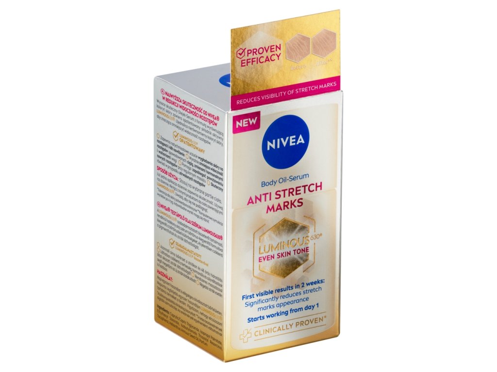 Obavy z plavek a krátkých sukní hoďte za hlavu. Olejové sérum vás pohladí na těle i na duši. Jeho vysoce efektivní složení obsahuje patentovanou účinnou látku LUMINOUS630, která vyrovnává tón pokožky a výrazně snižuje viditelnost pigmentových skvrn a strií způsobených těhotenstvím či hormonálními a váhovými změnami. Při pravidelných masážích navíc pomáhá předcházet novým striím a působí i na starší strie. Okamžitý pocit hladké pokožky si užijete až 48 hodin a z prvních viditelných výsledků, které nastartují vaše sebevědomí, se můžete těšit už po 2 týdnech. Ještě lepší výsledky se dostaví po měsíci pravidelného používání.