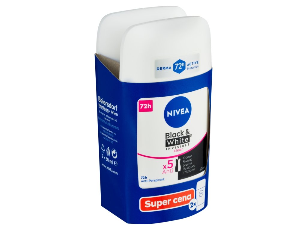 Nivea tuhý AP (2x50ml/bal) B&W Inv Clear