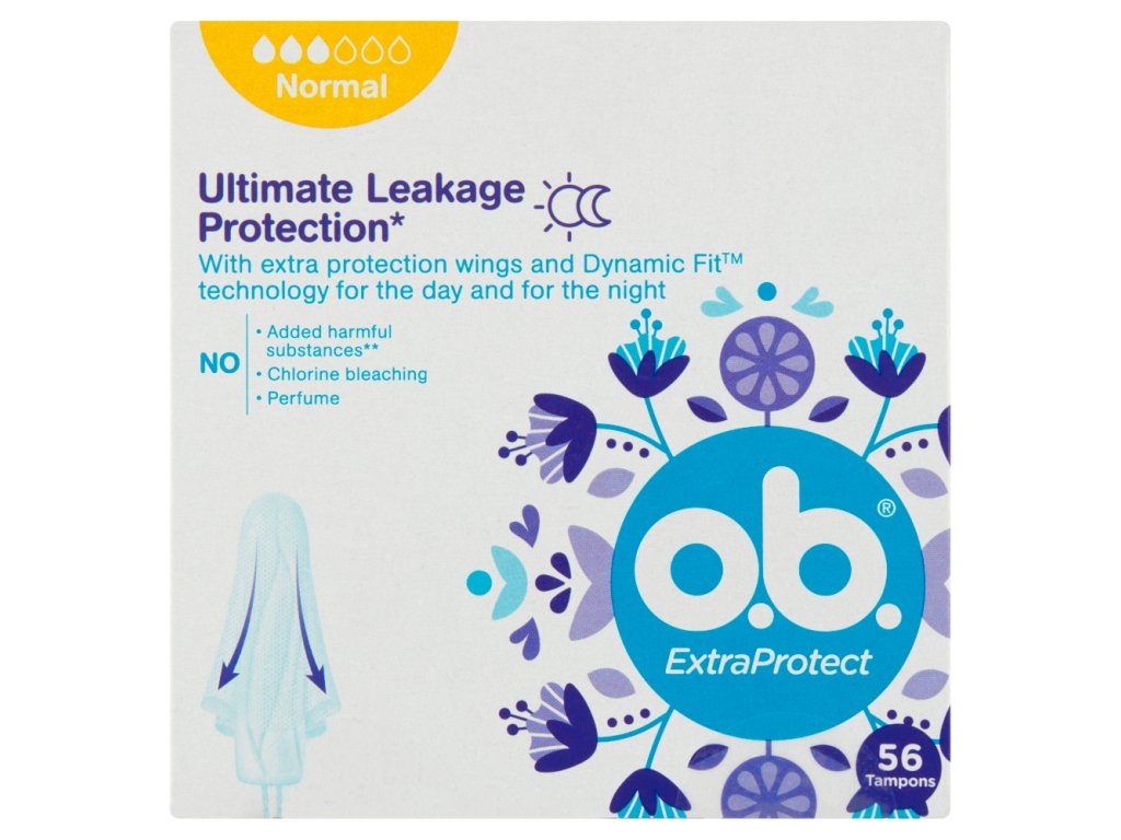 Chcete i během svých dnů sportovat a podnikat různé aktivity, tak jak jste zvyklá? Pak si vás získají tampony O.B. Extra Protect Normal 56 ks, které se postarají o vaši maximální ochranu před protečením a obdaří vás pocitem nezaměnitelného komfortu. Tampony o velikosti normal si zamilujete, jestliže se u sebe setkáváte se středně silným krvácením. Balení tamponů O.B. má 56 ks. S technologií DynamicFit se tampon účinně podvolí tvarům vašemu těla, čímž vás spolehlivě ochrání i při vašich sportovních aktivitách. Tampony nejsou napuštěny chlorem.
