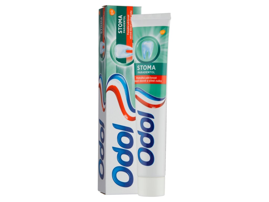 Odol Stoma Paradentol je zubní pasta, která při pravidelném čištění zubů pomáhá odstraňovat škodlivý zubní plak. Zubní pasta ODOL Stoma Paradentol, pomáhá udržovat zdravé dásně, nová receptura zubní pasty obsahuje látku Bradosol, který pomáhá chránit zubní sklovinu.