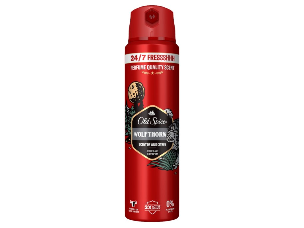 Účinný deodorant ve spreji OLD SPICE Wolfthorn přináší povzbudivou osvěžující vůni pro opravdové muže! Neviditelná ochrana proti tělesnému zápachu a potu vás nezklame po celý den díky technologii postupného uvolňování. Zvýrazněte vaši mužnost a sebevědomí s deodorantem OLD SPICE Wolfthorn ve spreji.
