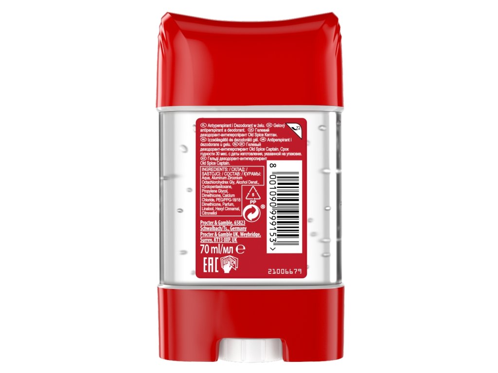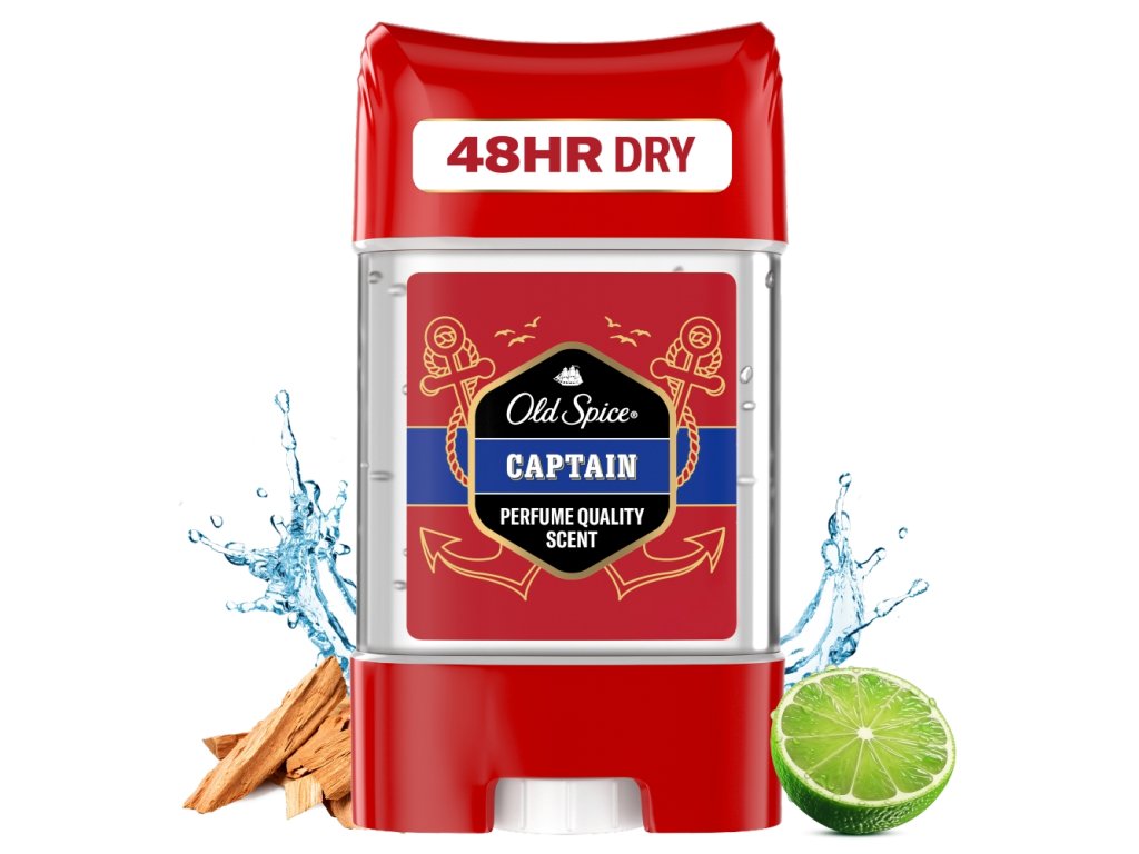 Jedinečný gelový antiperspirant a deodorant Old Spice Captain vám přináší příjemnou a sbližující vůni Santalového dřeva a otevřeného oceánu. Je to vůně pro muže, kteří vědí, jak správně vonět. Neviditelná ochrana proti tělesnému zápachu a potu vás nezklame až 48 hodin díky technologii postupného uvolňování. Celý den budete svěže vonět a vaši příjemnou vůni ucítí také ostatní. Zvýrazněte vaši mužnost a sebevědomí s gelovým antiperspirantem Old Spice Captain.