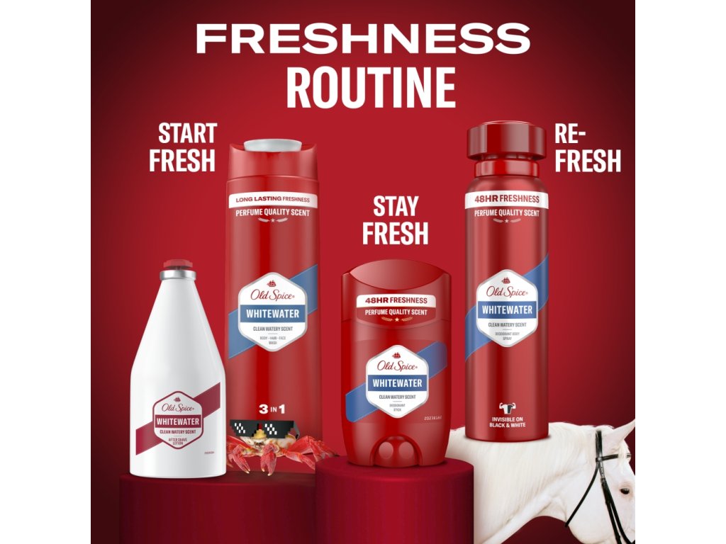 Old Spice Whitewater je vůně pro muže, kteří považují trénink za cestu ke zkušenosti, ne za omezování. Velmi svěží a povznášející vodní vůně. Old Spice Whitewater se odlišuje od ostatních vůní svého druhu, svojí intenzitou a zároveň svěžestí.