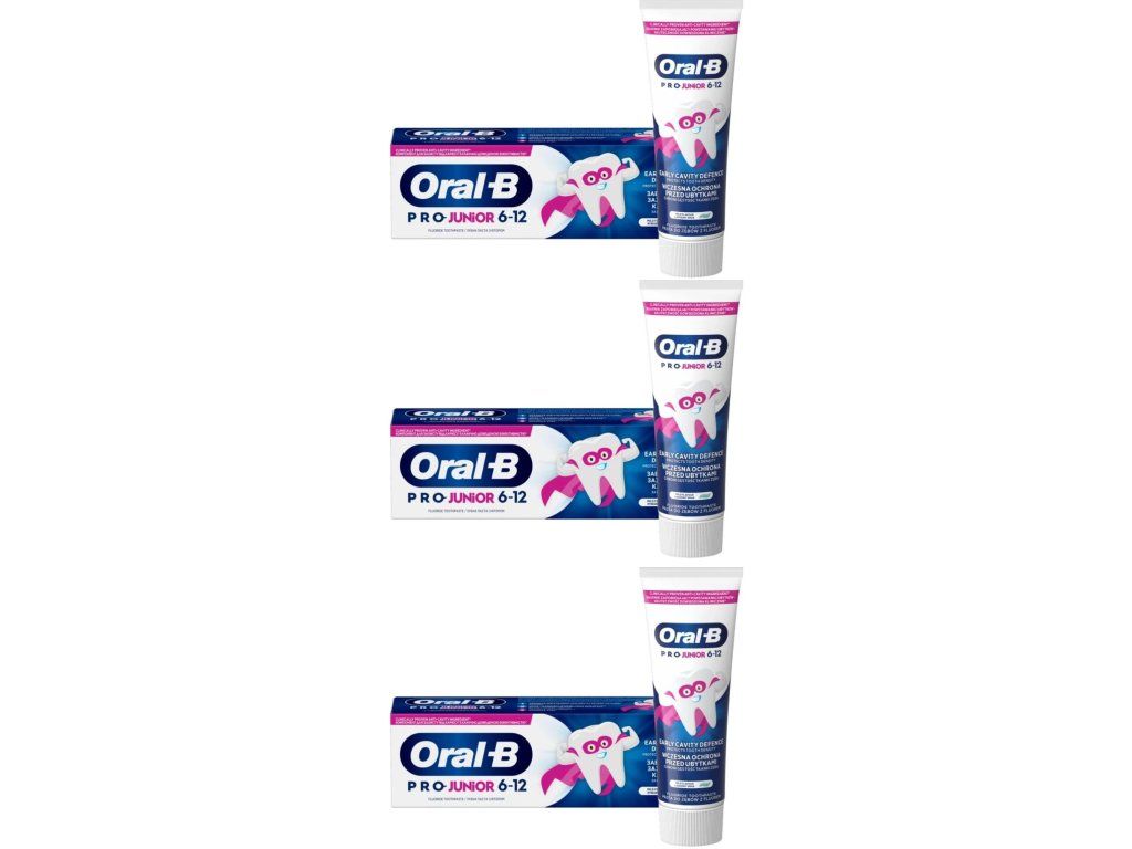 Zubní pasta Oral-B Pro Junior je speciálně navržená pro děti ve věku 6–12 let. Vyvinuta společně se zubními lékaři, pomáhá předcházet zubnímu kazu a chrání zuby před každodenním vlivem kyselin a cukrů. Obsahuje fluorid v množství vhodném pro daný věk, který pomáhá chránit sklovinu, a má jemnou mátovou příchuť.