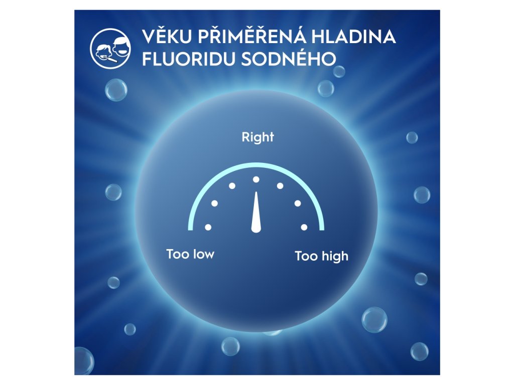 Klinicky ověřená složka proti zubnímu kazu, fluorid sodný, pomáhá předcházet zubním kazům.