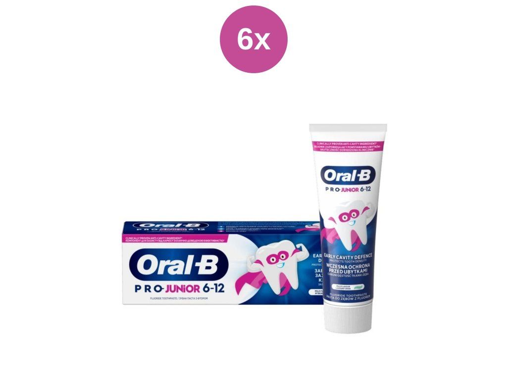 Zubní pasta Oral-B Pro Junior je speciálně navržená pro děti ve věku 6–12 let. Vyvinuta společně se zubními lékaři, pomáhá předcházet zubnímu kazu a chrání zuby před každodenním vlivem kyselin a cukrů. Obsahuje fluorid v množství vhodném pro daný věk, který pomáhá chránit sklovinu, a má jemnou mátovou příchuť.