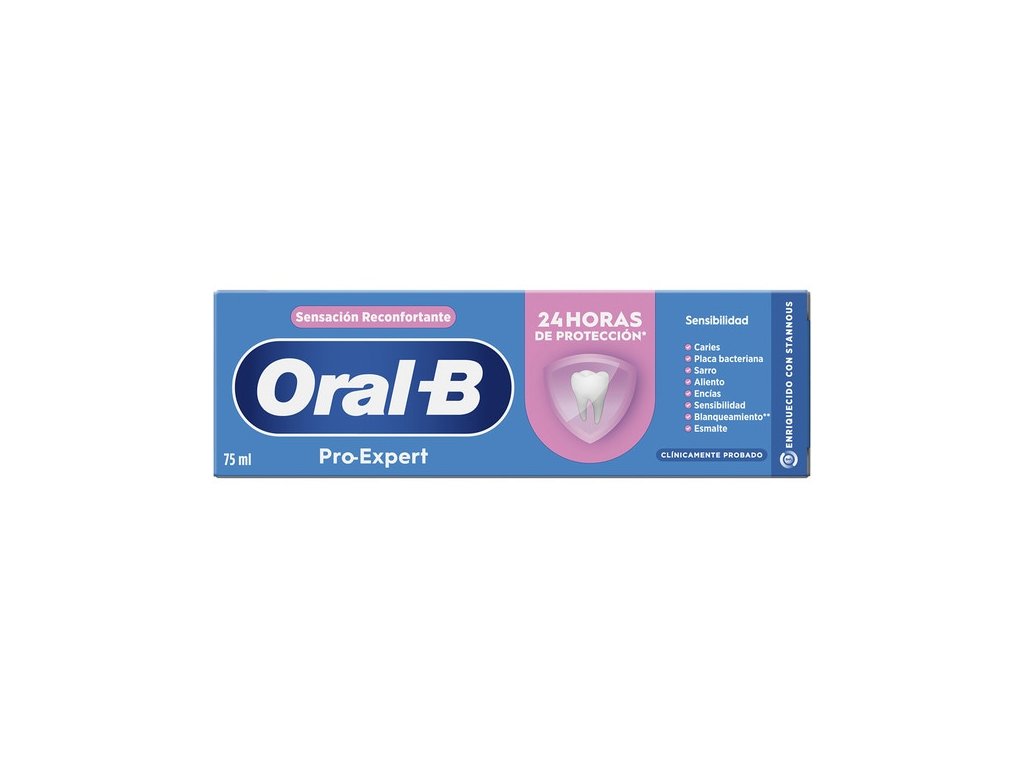 Oral-B Pro-Expert Sensitive Protection 75 ml je zubní pasta vyvinutá s důrazem na osoby s citlivými zuby či dásněmi. Díky její technologii a vyváženému složení pomáhá snižovat citlivost zubů, posilovat sklovinu a podporovat zdraví dásní. Je vhodná pro každodenní použití ráno i večer.