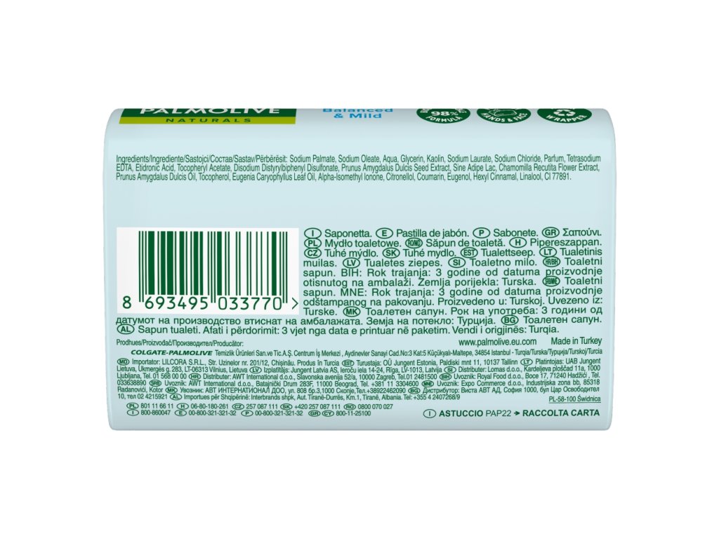Palmolive Naturals Balanced & Mild tuhé mýdlo s výtažkem z heřmánku a vitaminem E. Jemná péče o Vaši pokožku. Palmolive mýdlo bílé se užívá na pokožku pro zvýšení hydratace a celkově lepší stav.