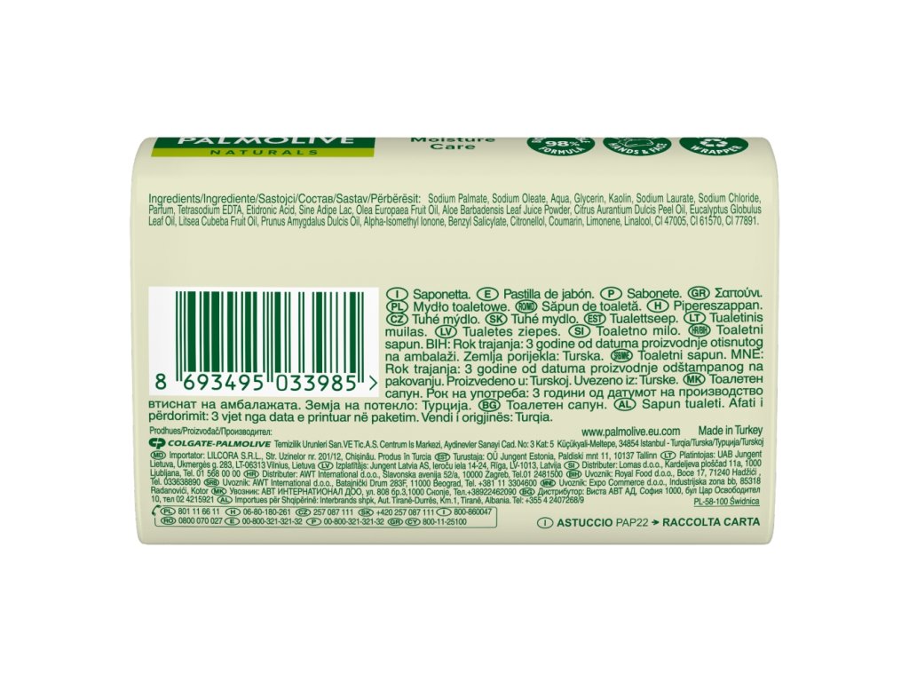 Palmolive Naturals tuhé mýdlo Moisture Care s výtažkem z oliv. Jemná péče o Vaši pokožku. Přirozeně zvláčňující pocit pro Vaší pokožku.