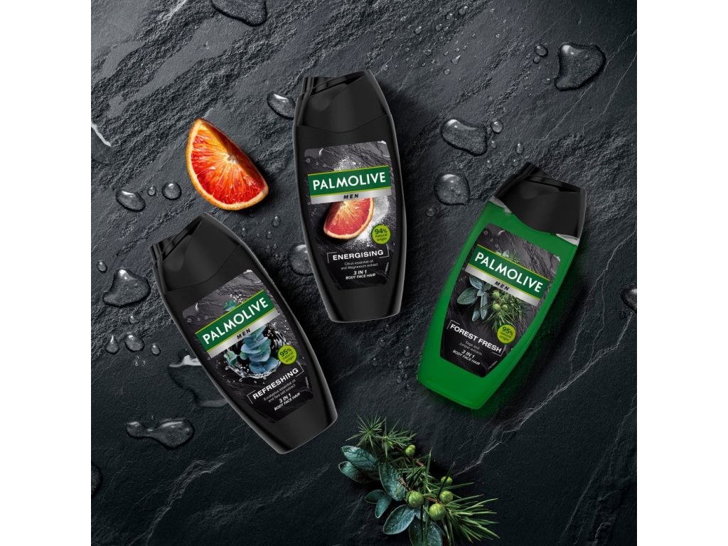 Sprchový gel Palmolive Men Energising 3 v 1 pokožku při sprchování dokonale vyčistí a zanechá svěží vůni.