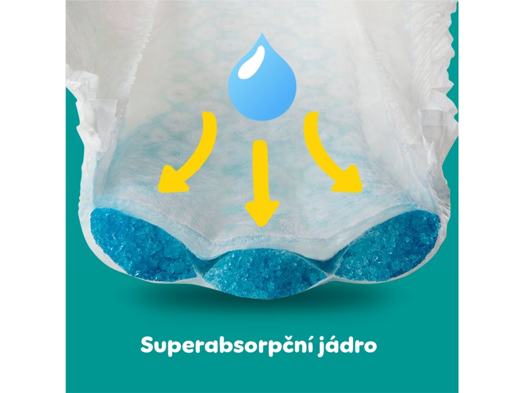 Rychle a účinně absorbují vlhkost, účinně ji oddělují od pokožky miminka a bezpečně ji uzamknou uvnitř super-absorpčního jádra.